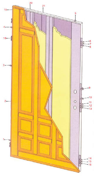 Lock system: Straight displaced central lock (14) at bottom and above, monoblock lock. |